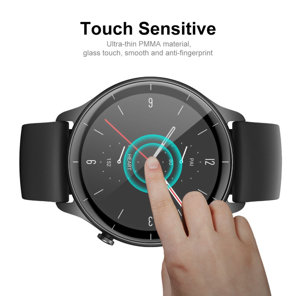 Schützen Sie Ihre Amazfit GTR 3 mit dem ENKAY HAT PRINCE 2Pcs/Set 3D Curved Complete Covering Bildschirm Protector! Dieses Schutzfilm-Set besteht aus hochwertigem PC-Kantenmaterial und PMMA, das eine hohe Transparenz und ein angenehm sanftes Touch-Gefühl bietet. Dank der oleophoben und hydrophoben Eigenschaften ist es nicht nur resistent gegen Fingerabdrücke, sondern auch äußerst pflegeleicht. Mit der flawless touchscreen Genauigkeit genießen Sie ein ungestörtes Nutzungserlebnis. Die eleganten Linien mit einem Maßstab an der Kante verleihen Ihrem Smartwatch eine stilvolle Note. Zudem sorgt die starke Härte des Materials für optimalen Schutz vor Stürzen, Kratzern und anderen äußeren Einflüssen. Das 3D-Design ermöglicht eine glatte Oberfläche, die sicher und benutzerfreundlich ist, während die vollständige Abdeckung des Bildschirms erstklassigen Schutz bietet. Investieren Sie in den besten Schutz für Ihre Smartwatch und genießen Sie die authentische Touch-Erfahrung, die dieses Produkt zu bieten hat!
