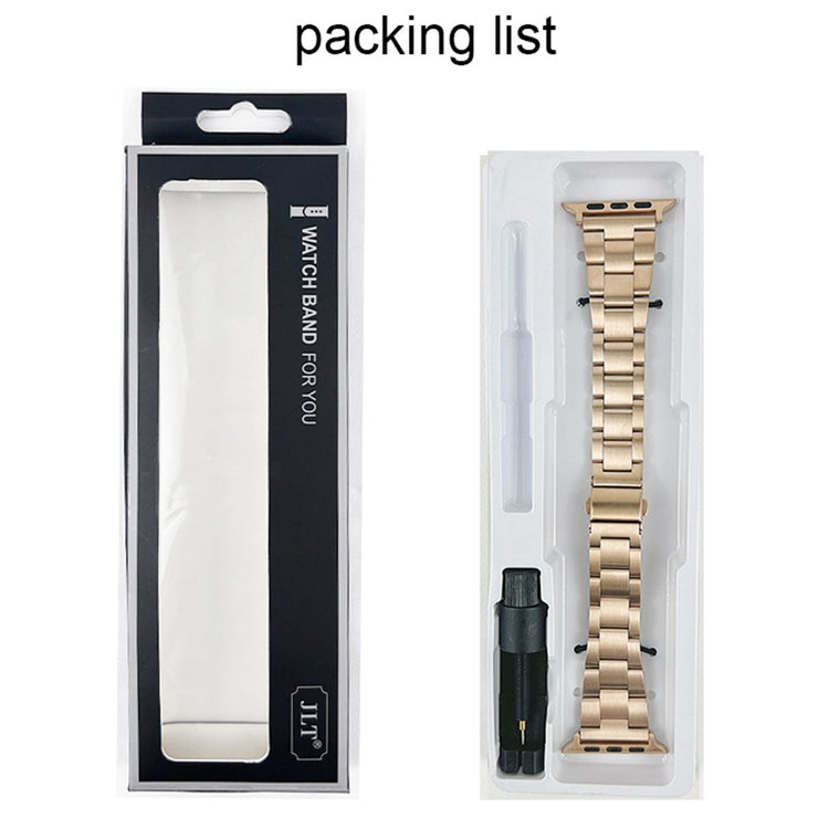 Entscheiden Sie sich für das JLT Armband für die Apple Watch Series 9 / 8 / 7 41mm / 6 / 5 / 4 / SE (2023) / SE (2022) / SE 40mm / 3 2 1 38mm und verwandeln Sie Ihre Smartwatch in ein elegantes Accessoire. Hergestellt aus hochwertigem Edelstahl, bietet dieses robuste Armband eine hohe Dauerhaftigkeit und ist somit ideal für den täglichen Gebrauch. Mit seinem faltbaren Verschluss gestaltet sich das Anlegen und Abnehmen des Armbands äußerst praktisch und bequem. Dieses Armband ist die perfekte Alternative zu alten oder beschädigten Uhrenbändern und verleiht Ihrer Uhr einen frischen Look. Ob im Berufsleben, bei Feiern oder im Alltag, es passt zu jeder Gelegenheit und persönlichen Stil. Genießen Sie sowohl Komfort als auch Stil und machen Sie Ihre Smartwatch zu einem wahren Blickfang!