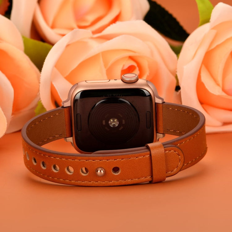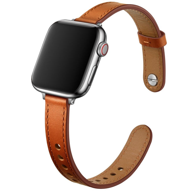 Das Armband aus hochwertigem Echtleder für die Apple Watch ist die perfekte Wahl, wenn Sie auf der Suche nach einem stilvollen und langlebigen Tragekomfort sind. Hergestellt aus oberster Schicht von echtem Leder, bietet es sowohl elegantes Design als auch Robustheit für den täglichen Gebrauch. Das durchdachte Vielzahl an Löchern ermöglicht eine einfache Anpassung an Ihren Handgelenkumfang, sodass Sie immer die perfekte Passform haben. Dieses Armband ist die ideale Ersetzung für Ihr altes oder defektes Armband, denn es lässt sich mühelos anbringen und abnehmen. Mit einem Gewicht von nur 15g ist es dabei angenehm leicht und beeinträchtigt nicht Ihr Tragegefühl. Investieren Sie in Qualität und Stil – Ihr Handgelenk wird es Ihnen danken!