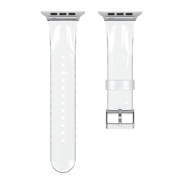 Entscheiden Sie sich für unser hochwertiges Armband aus transparentem TPU, das ideal für die Apple Watch Series 9 / 8 / 7 41mm / 6 / 5 / 4 / SE (2023) / SE (2022) / SE 40mm / 3 / 2 / 1 38mm geeignet ist. Hergestellt aus strapazierfähigem und langlebigem TPU, bietet dieses Armband sowohl Tragekomfort als auch eine hervorragende Verschleißfestigkeit. Die ergonomische Gestaltung sorgt dafür, dass das Armband weich und angenehm auf der Haut liegt, was es zur perfekten Wahl für den täglichen Gebrauch macht. Dank der verstellbaren Größe passt es sich leicht Ihrem Handgelenkumfang an, sodass Sie den perfekten Sitz finden können. Wenn Ihr altes Armband beschädigt oder abgenutzt ist, ist dies die ideale Ersatzlösung. Darüber hinaus können Sie aus verschiedenen Farben wählen, um Ihrem persönlichen Stil gerecht zu werden. Machen Sie den nächsten Schritt in puncto Stil und Komfort mit unserem transparenten Armband für die Apple Watch!