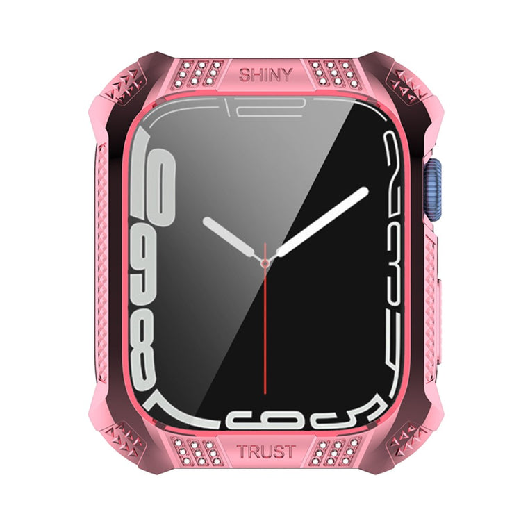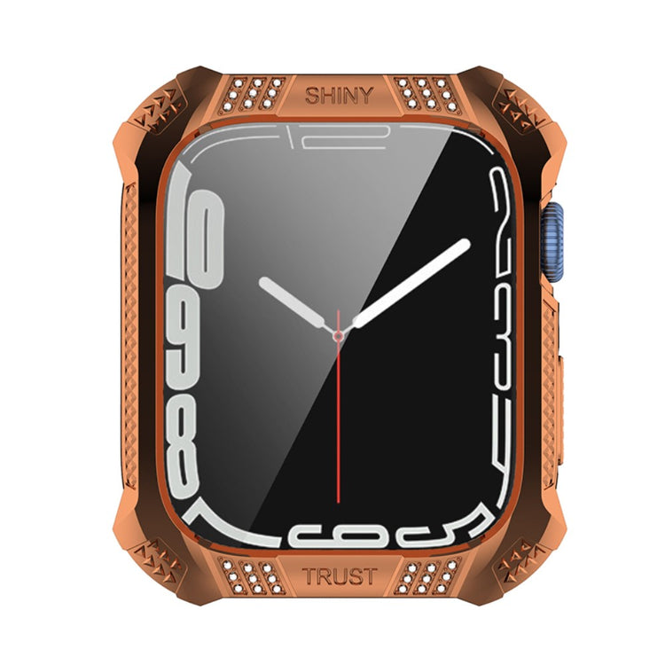 Schützen Sie Ihre Apple Watch Series 9 / 8 / 7 mit unserem hochwertigen elektroplatierten PC-Uhrengehäuse, das mit funkelndem Rhinestone-Dekor verziert ist. Dieses Premium-Gehäuse bietet nicht nur einen stilvollen Look, sondern auch eine vollständige Rundumschutz für Ihr wertvolles Gerät. Mit seiner robusten und langlebigen Konstruktion schützt es Ihre Uhr zuverlässig vor Stößen und Kratzern. Dank der präzisen Ausschnitte haben Sie jederzeit leichten Zugang zu den Tasten, während der integrierte gehärtete Glasschutz zusätzlichen Schutz vor Kratzern und Rissen bietet. Die einfache und schnelle Installation ermöglicht es Ihnen, Ihre Uhr im Handumdrehen zu rüsten. Investieren Sie in den optimalen Schutz und Wiedererkennungswert Ihrer Apple Watch mit diesem einzigartigen Accessoire!