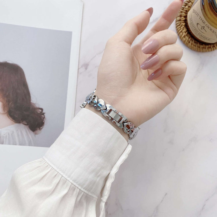 Das süße Bienen-Design mit Rhinestone-Dekor sorgt für einen modischen und stilvollen Look Ihrer Smartwatch. Hergestellt aus hochwertigem Edelstahl, ist das Armband robust und langlebig für eine langfristige Nutzung. Es passt perfekt um Ihr Handgelenk mit einem Umfang von 160mm-220mm und ist einfach zu entfernen und zu installieren.