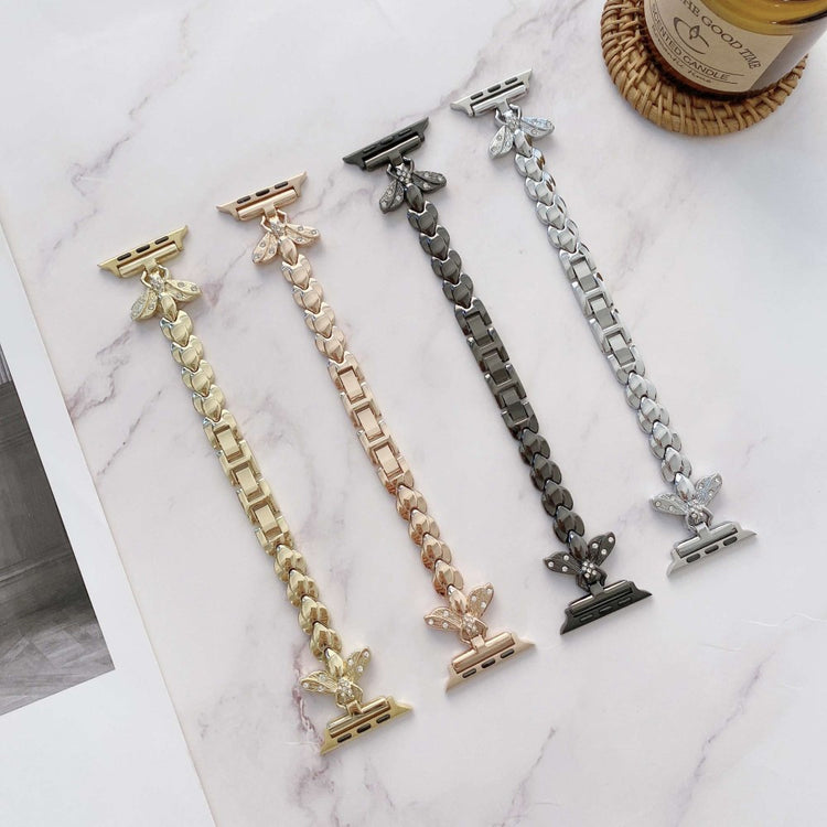 Verleihen Sie Ihrer Apple Watch mit diesem bezaubernden, bienenförmigen Rhinestone-Dekor aus Edelstahl eine ganz persönliche Note! Dieses Armband ist aus hochwertigem Edelstahl gefertigt, der hart und haltbar ist und somit für den langfristigen Einsatz geeignet ist. Die funkelnden Rhinestones machen das Armband zu einem stilvollen und modischen Accessoire, das Ihrem Handgelenk einen Hauch von Glamour verleiht. Es ist die ideale Armband-Ersatzlösung für Ihr altes oder defektes Armband. Mit einem passend gestalteten Schnitt sorgt es für einen perfekten Sitz an Handgelenken mit einem Umfang von 160 mm bis 220 mm. Die feine Verarbeitung gewährleistet ein angenehmes Tragegefühl, und dank der einfachen Montage ist der Wechsel des Armbands ein Kinderspiel. Gönnen Sie sich dieses stilvolle Accessoire und setzen Sie Akzente mit Ihrer Apple Watch!