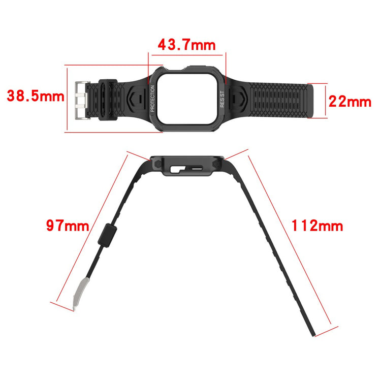 Entscheiden Sie sich für unser Uhrenarmband mit Kantenkontrast und Anti-Sturz-PC-Uhrengehäuse als ideales Zubehör für Ihre Apple Watch! Dieses einstellbare TPU-Armband bietet maximalen Tragekomfort und passt sich perfekt an Ihr Handgelenk an. Die klassische Dornschließe ermöglicht ein einfaches An- und Ausziehen, sodass Sie immer bereit sind, Ihre Uhr zu tragen. Dank der vorgebohrten Löcher lässt sich die Größe mühelos anpassen, sodass Sie optimalen Komfort genießen können. Das Gehäuse ist speziell für Ihre Smartwatch designt, sodass alle Ausschnitte genau passen und die Funktionen Ihrer Uhr uneingeschränkt genutzt werden können. Unsere Lösung bietet vollen Schutz und bewahrt Ihre Uhr vor Kratzern und Stößen, damit sie immer wie neu aussieht. Hergestellt aus nachhaltigen Materialien, steht unsere hochwertige Verarbeitung für Langlebigkeit und Stil. Investieren Sie in den Schutz und das Erscheinungsbild Ihrer Apple Watch mit diesem attraktiven, praktischen Produkt!