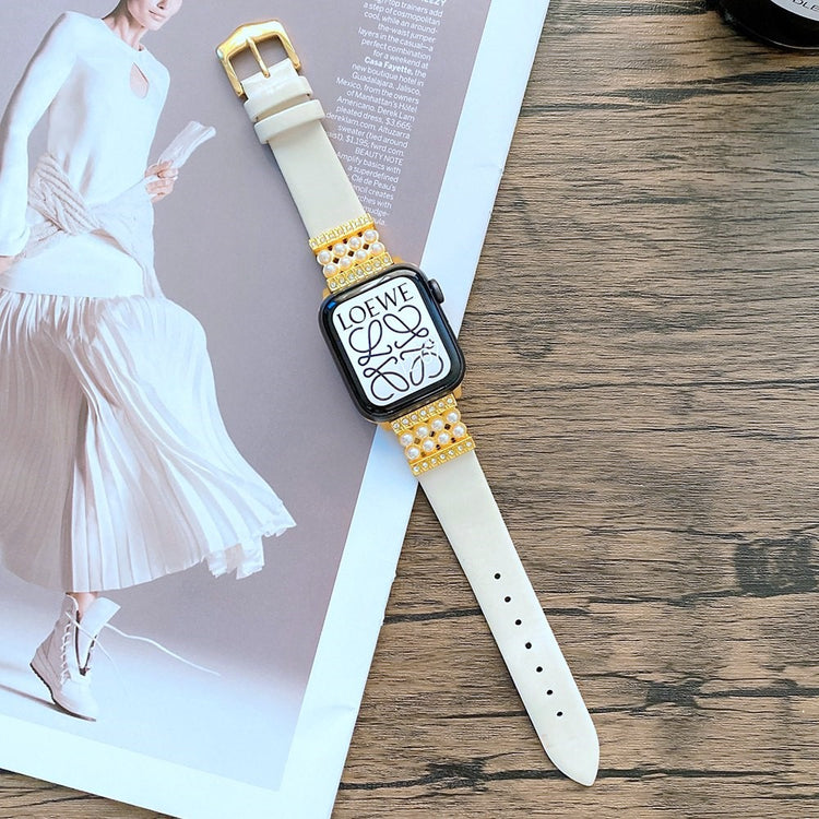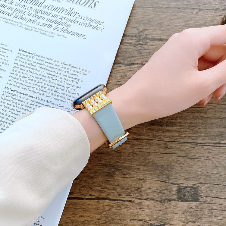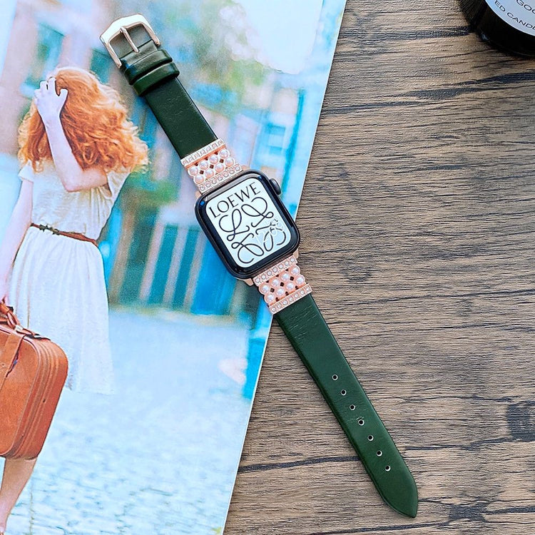 Entdecken Sie das perfekte Armband für Ihre Apple Watch, das Stil und Eleganz miteinander verbindet. Dieses Armband ist aus hochwertigem Echtem Leder gefertigt und verleiht Ihrem Handgelenk einen Hauch von Luxus dank der Perl- und Strassverzierung. Es ist nicht nur optisch ansprechend, sondern auch weich und angenehm zu tragen, sodass es ideal für den täglichen Gebrauch ist. Der Metallschließe ermöglicht ein einfaches Anlegen und Abnehmen des Armbands. Mit den praktischen Löchern am Armband können Sie die Größe mühelos anpassen, sodass es optimal zu Ihrem Handgelenk passt, egal ob Sie einen Umfang von 10 bis 21 cm haben. Dieses Armband ist die ideale Alternative zu Ihrem alten oder defekten Armband und eignet sich perfekt für verschiedene Anlässe, von Arbeit und Geschäftstreffen bis zu Partys. Gönnen Sie sich dieses stilvolle Accessoire und verleihen Sie Ihrer Apple Watch einen neuen Look!