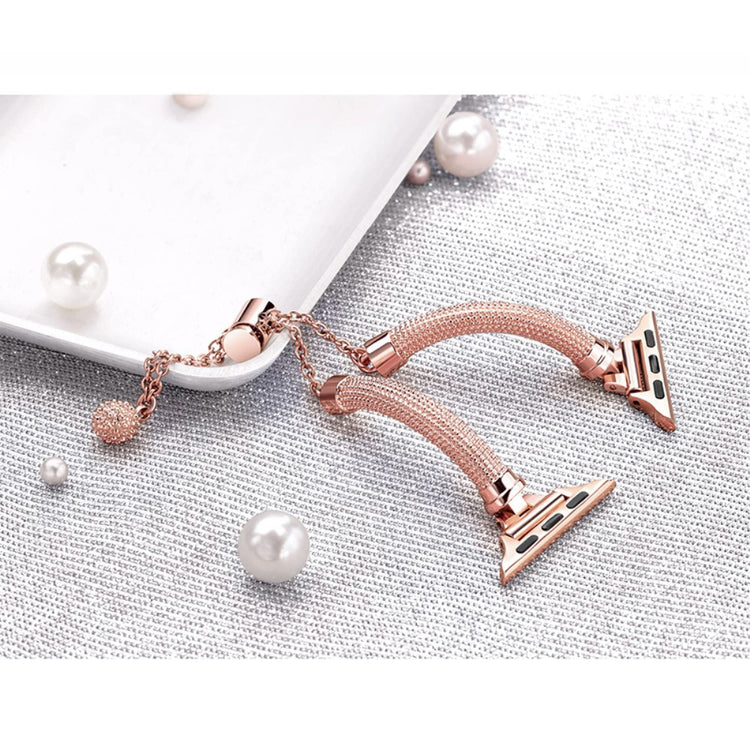 Entscheiden Sie sich für dieses hochwertige Metall-Smartwatch-Armband, das speziell für die Apple Watch Series 9 / 8 / 7 41mm / 6 / 5 / 4 / SE (2023) / SE (2022) / SE 40mm / 3 / 2 / 1 38mm entwickelt wurde. Hergestellt aus hochwertigem Metallmaterial, ist es nicht nur extrem widerstandsfähig gegen Schweiß, sondern bietet auch langen Tragekomfort. Das stilvolle und elegante Design des Armbands zieht die Blicke auf sich und macht Sie zum Mittelpunkt jeder Veranstaltung. Mit der innovativen Slide-up-and-down-Funktion lässt sich das Armband ganz einfach anpassen, sodass Sie im Handumdrehen den perfekten Sitz genießen können. Setzen Sie auf Qualität und Eleganz und verleihen Sie Ihrem Look das gewisse Etwas mit diesem dauerhaften und dennoch komfortablen Ersatzarmband.