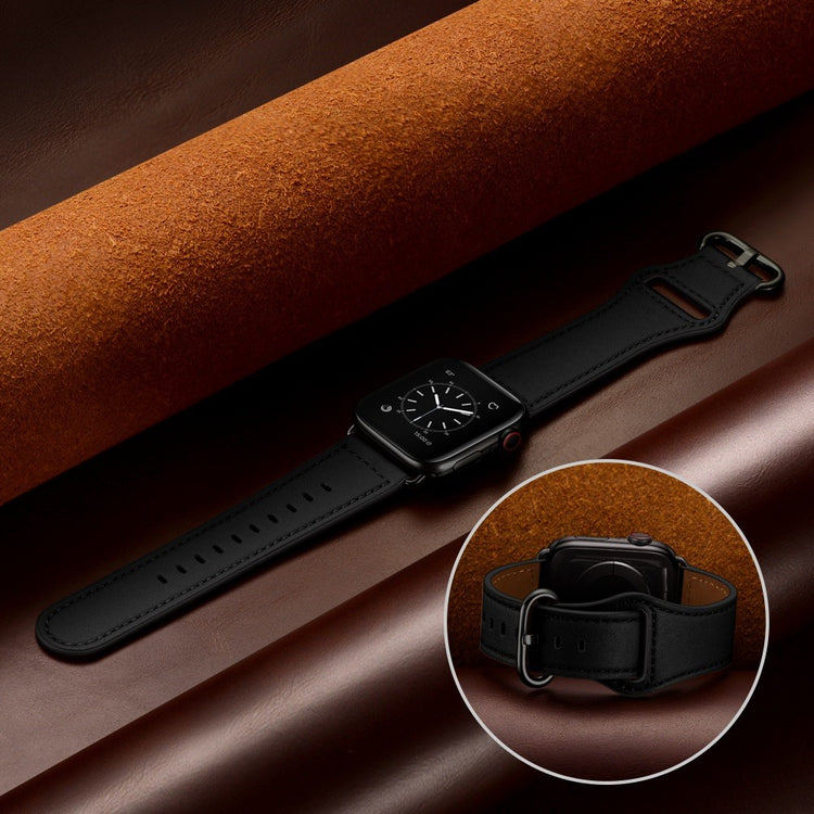 Fortrinligt Apple Watch Series 7 41mm Ægte læder Urrem - Sort#serie_1
