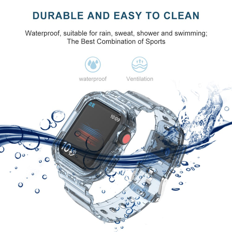 Entdecken Sie die Vorteile des Glacier Series TPU Smart Watch Case Covers und des Uhrenarmbands für die Apple Watch Series 7 45mm. Dieses Produkt besteht aus TPU-Material, das nicht nur umweltfreundlich ist, sondern auch eine angenehme Haptik bietet. Der praktische Metallverschluss sorgt für ein einfaches An- und Ablegen der Uhr. Dank der Belüftungslöcher am Uhrenarmband können Sie die Größe individuell anpassen, um maximalen Komfort zu gewährleisten. Die präzisen Ausschnitte des Schutzcovers passen perfekt zu Ihrer Smartwatch und bieten idealen Schutz gegen Kratzern und Stößen. Dieses Zubehör vereint Funktionalität und Stil und ist die ideale Wahl für jeden, der seine Smartwatch optimal schützen möchte. Schützen Sie Ihre Uhr und werten Sie Ihr Handgelenk auf – mit diesem hochwertigen Produkt sind Sie bestens ausgestattet!