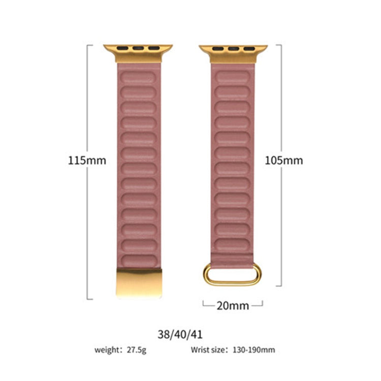 Entscheiden Sie sich für unser magnetisches Armband aus echtem Rindsleder, das sich perfekt für die Apple Watch Series 9 / 8 / 7 (41mm) / 6 / 5 / 4 / SE (2022) / SE (2023) / SE (40mm) / 3 / 2 / 1 (38mm) eignet! Das Besondere an diesem Armband ist die verstellbare magnetische Lengte, die es ermöglicht, es bequem an jedes Handgelenk anzupassen. Genießen Sie den komfortablen Tragekomfort, den das weiche genuine Rindsleder bietet. Sie müssen sich keine Sorgen um das Waschen der Hände oder das Schwitzen machen, da das Material auch bei Nässe beständig ist und Handschweiß verhindert. Die Strapazierfähigkeit und die hohe Anpassungsfähigkeit des Armbands erleichtern den Wechsel auf ein anderes Modell – einfach abnehmen und schnell wieder anbringen! Dank der integrierten hochwertigen Magnete bleiben Sie beruhigt, selbst wenn Sie Ihren Arm schütteln; das Armband bleibt sicher an Ort und Stelle. Gönnen Sie sich und Ihrer Apple Watch das Beste mit diesem eleganten und funktionalen Armband!