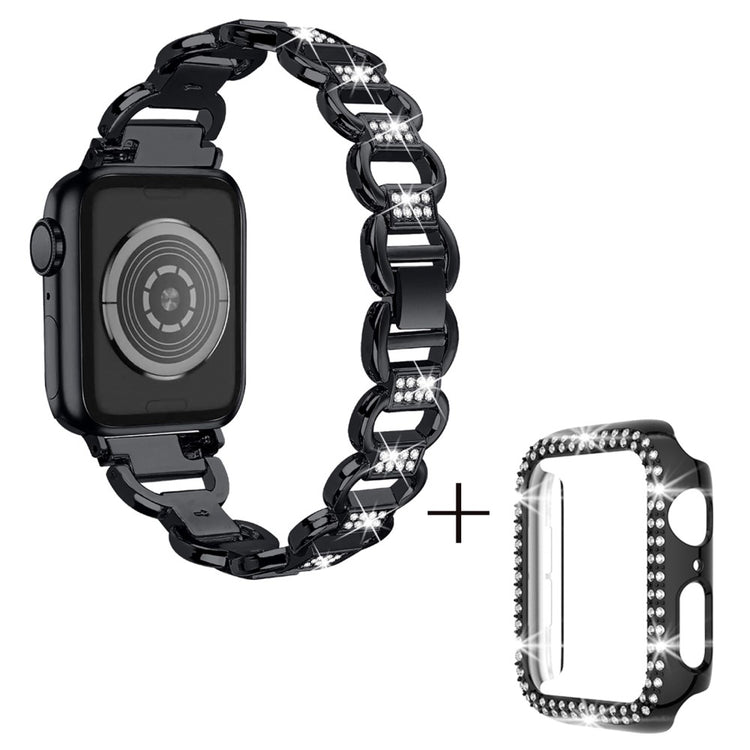 Verleihen Sie Ihrer Apple Watch Series 7/8 41mm einen Hauch von Glamour mit diesem Ersatz-Set aus Armband und Schutzhülle. Das oval geformte Armband ist mit funkelnden Strasssteinen besetzt und besteht aus einer robusten und dennoch angenehmen Legierung.