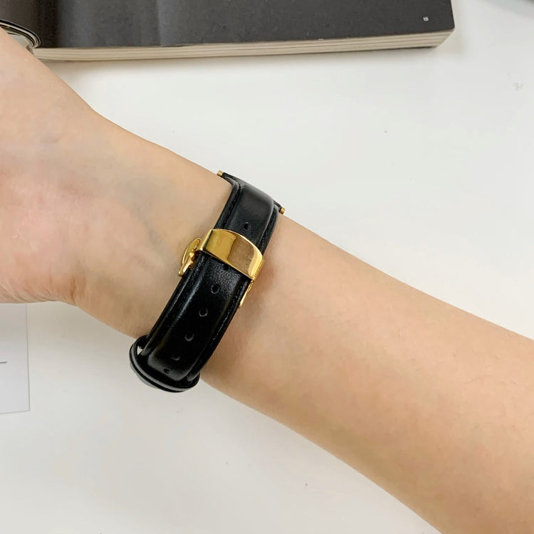 Apple Watch Series 41mm / 40mm / 38mm Cow Leather Watch Strap Replacement Watchband - Black / Gold