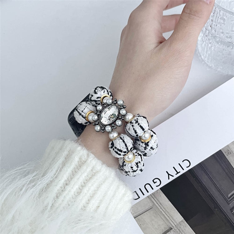 Apple Watch Series 41mm - 40mm - 38mm Universal Velvet Cotton Beaded Bracelet - Rose