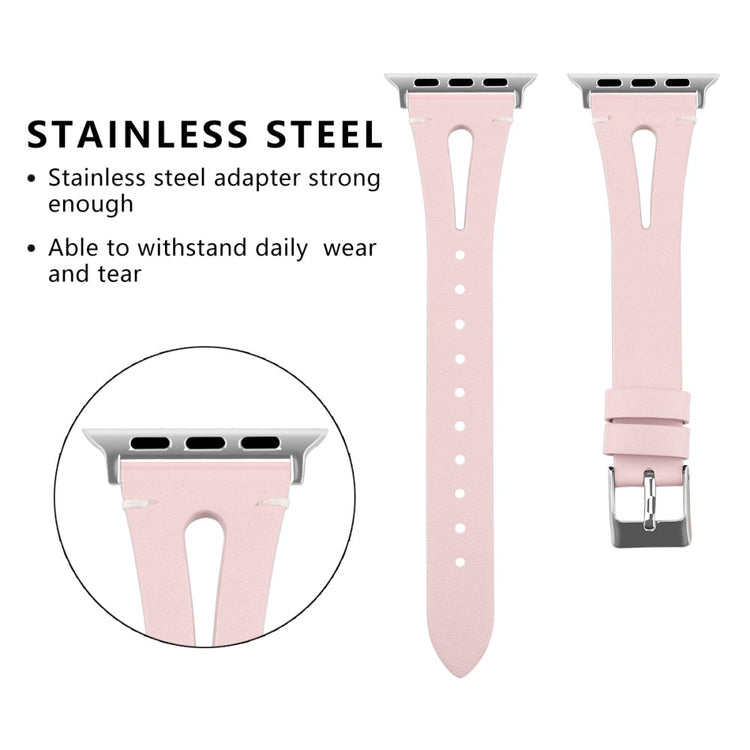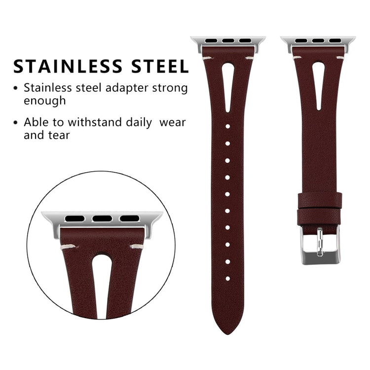 Upgrade your Apple Watch mit unserem hochwertigen Echtleder-Armband, das aus erstklassigem Rindleder gefertigt ist. Dieses elegante Armband mit durchdachten Ausschnitten bietet nicht nur einen modernen Look, sondern ist auch leicht und weich, sodass Sie kaum bemerken werden, dass Sie es tragen. Dank seiner flexiblen Passform eignet es sich perfekt für Handgelenke mit einem Umfang von 5,5 bis 7,8 Zoll, egal ob Sie ein kleines oder großes Handgelenk haben. Die Installation ist ein Kinderspiel, da der hochwertige Edelstahl-Connector nahtlos mit Ihrer Apple Watch kompatibel ist – einfach den Connector in den vorgesehenen Anschluss schieben und fertig. Mit einem Gewicht von nur 17g bietet Ihnen dieses Armband nicht nur Stil, sondern auch höchsten Tragekomfort. Gönnen Sie sich und Ihrer Apple Watch ein Upgrade, das sowohl Funktionalität als auch Eleganz vereint!