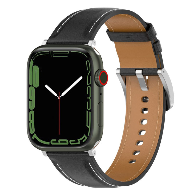 Entscheiden Sie sich für dieses hochwertige Echtleder-Armband, um das Erscheinungsbild Ihrer Apple Watch zu verbessern und gleichzeitig den Tragekomfort zu erhöhen. Hergestellt aus erstklassigem Echtem Rindsleder, zeichnet sich das Armband durch seine weiche und angenehme Beschaffenheit aus, die ein komfortables Tragen den ganzen Tag über ermöglicht. Die metallische Schnallenverschlüsse sorgen für ein einfaches An- und Ablegen, während die praktischen Löcher am Armband eine Anpassung an unterschiedliche Handgelenkgrößen ermöglichen. Dieses Armband ist die perfekte Wahl als Ersatz für Ihr altes oder defektes Band, denn es vereint Stil und Funktionalität. Ob im Alltag oder zu besonderen Anlässen, mit diesem Armband verleihen Sie Ihrer Uhr einen eleganten Touch, der sowohl langlebig als auch modisch ist. Erleben Sie die perfekte Kombination aus Design und Komfort – ein absolutes Muss für jeden Apple Watch Besitzer!