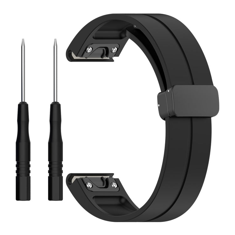 Das Silicon-Armband für die Garmin Fenix 7X, 7X Solar und Tactix 7 Pro besteht aus hochwertigem Material, das bequem zu tragen ist und sich leicht mit Ihrem täglichen Outfit kombinieren lässt. Es ist allergenfrei und hautfreundlich, was für eine lange Haltbarkeit sorgt. Dank des praktischen Klappverschlusses lässt sich die Größe des Armbands einfach anpassen und ist somit die ideale Ersatzlösung für Ihr altes, beschädigtes Armband.