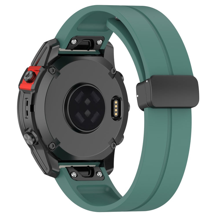 Das Silicon-Uhrenarmband für Garmin Fenix 7X / 7X Solar / Tactix 7 Pro ist die perfekte Wahl für alle, die eine stilvolle und praktische Armband-Erneuerung suchen. Hergestellt aus hochwertigem, weichem Silicon, bietet es nicht nur Komfort beim Tragen, sondern harmoniert auch mühelos mit jedem Alltagsoutfit. Das Material ist besonders hautfreundlich, verursacht keine Allergien und ist äußerst langlebig, sodass Sie lange Freude an Ihrem neuen Armband haben werden. Die ausgeklügelte Klapp-Schnalle ermöglicht eine einfache Größenanpassung, sodass das Armband optimal am Handgelenk sitzt. Mit einer Breite von 26 mm passt es perfekt zu verschiedenen Garmin-Modellen und ist somit ein idealer Ersatz für ein altes oder beschädigtes Armband. Investieren Sie in Qualität und Stil mit diesem vielseitigen und komfortablen Uhrenarmband!