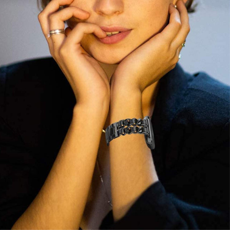 Dieses hochwertige Uhrenarmband aus Edelstahl und PU-Leder in geflochtener Kettenoptik verleiht Ihrer Smartwatch einen edlen und modernen Look. Das spiegelglanzpolierte Design, gefertigt in einem speziellen Kaltverformungsverfahren, unterstreicht die hochwertige Verarbeitung.