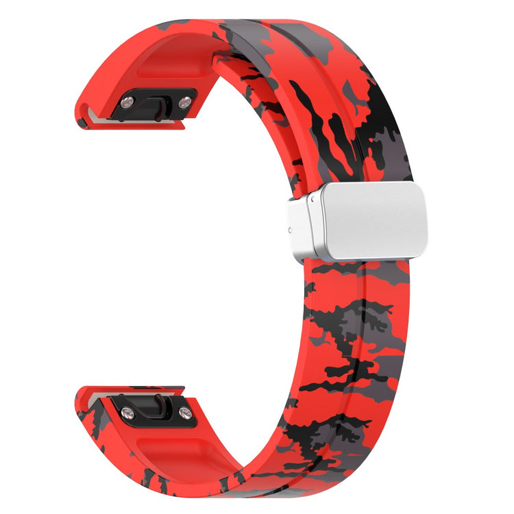 Garmin 26mm Quickfit Universal Flexible Watch Band Silver Buckle Wrist Strap - Camo Wine Red