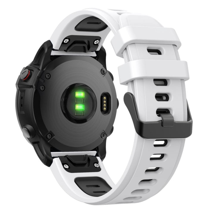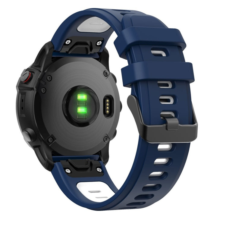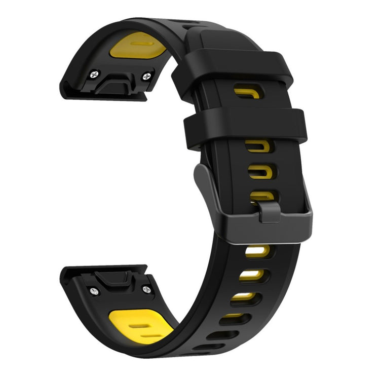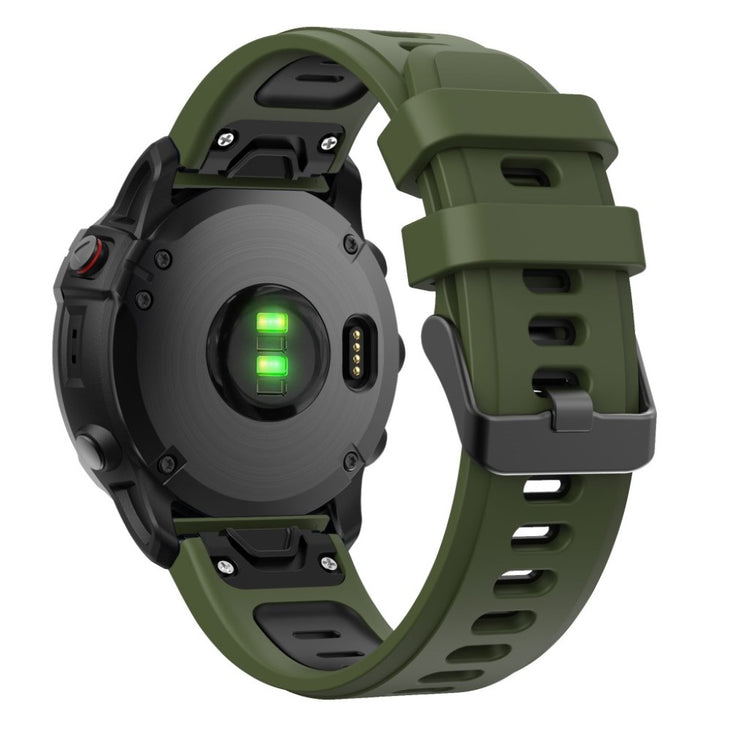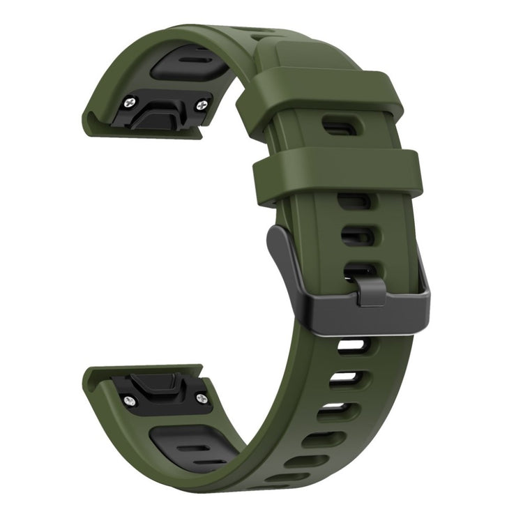 Der Dual Color Quick Release Silikon-Ersatzband ist die perfekte Wahl für alle, die ihre Garmin Smartwatch individuell gestalten möchten. Hergestellt aus hochwertigem Silikon, bietet dieses Armband nicht nur eine weiche und angenehme Trageerfahrung, sondern ist auch umweltfreundlich und gesund. Dank des wasser- und schweißfesten Designs brauchen Sie sich keine Sorgen um Nässe oder Schweiß zu machen, egal ob beim Sport oder im Alltag. Die viele Einstellmöglichkeiten durch das mehrlochige Design ermöglichen eine einfache Anpassung der Größe, sodass das Armband optimal sitzt und Ihnen jederzeit maximalen Komfort bietet. Zudem ist das Armband einfach zu installieren und zu entfernen, was es ideal für Arbeit oder Reisen macht. Erleben Sie die Vielseitigkeit und den persönlichen Stil dieses Produkts, das mit mehreren Garmin-Modellen kompatibel ist. Gönnen Sie sich das beste Tragegefühl und die Flexibilität, die Sie verdienen!