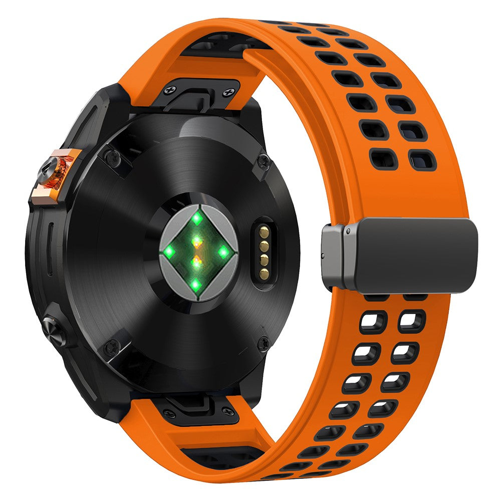 Wenn du einen aktiven Lebensstil führst und ein Armband brauchst, das mit deinen Workouts und Outdoor-Abenteuern mithalten kann, sind Silikonarmbänder die perfekte Wahl für deine Garmin Fenix 7X Pro. Diese Armbänder sind aus einem flexiblen und langlebigen Material gefertigt, das wasser-, schweiß- und schmutzabweisend ist. Egal, ob Sie ins Fitnessstudio gehen, schwimmen oder die freie Natur erkunden, ein Silikonarmband sorgt für den nötigen Komfort und Sicherheit. Außerdem sind Silikonarmbänder in einer Vielzahl von Farben erhältlich, so dass Sie das Aussehen Ihrer Smartwatch an Ihren persönlichen Stil anpassen können.