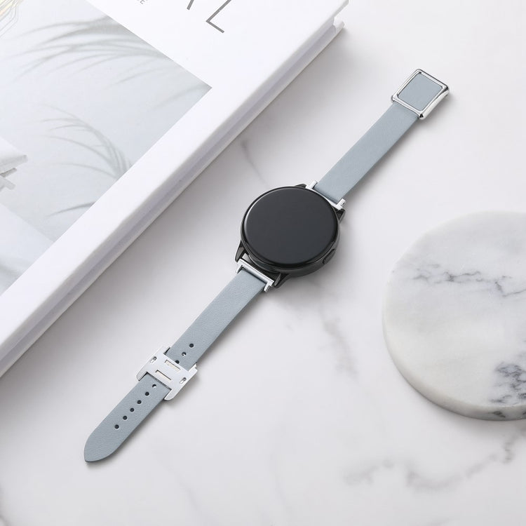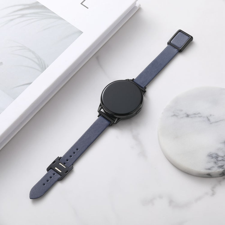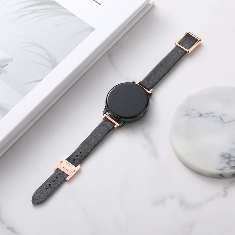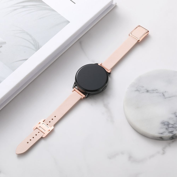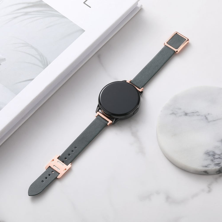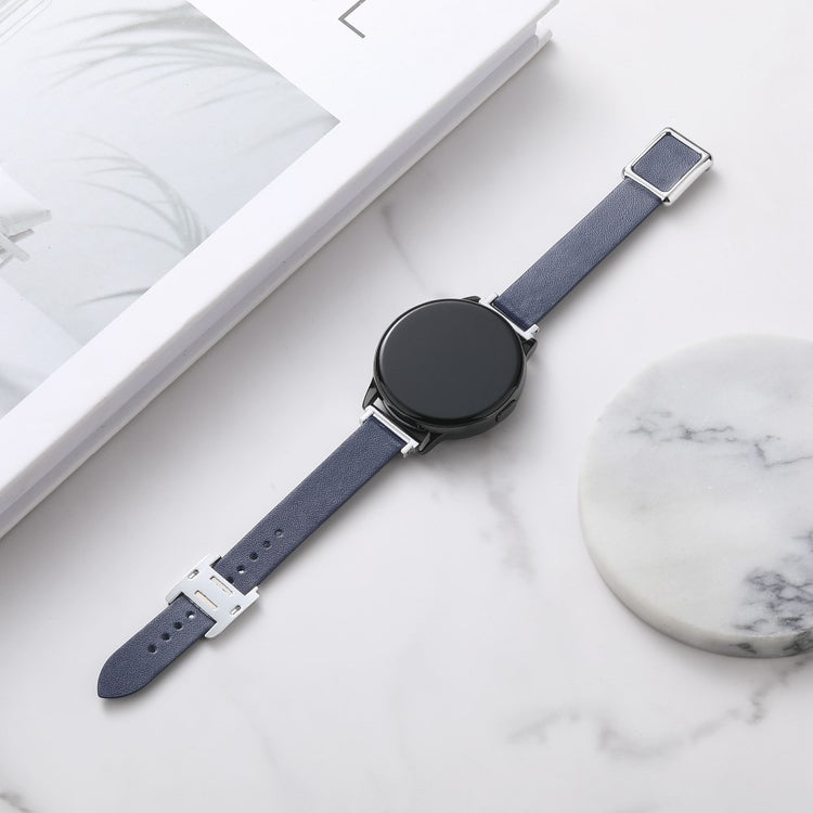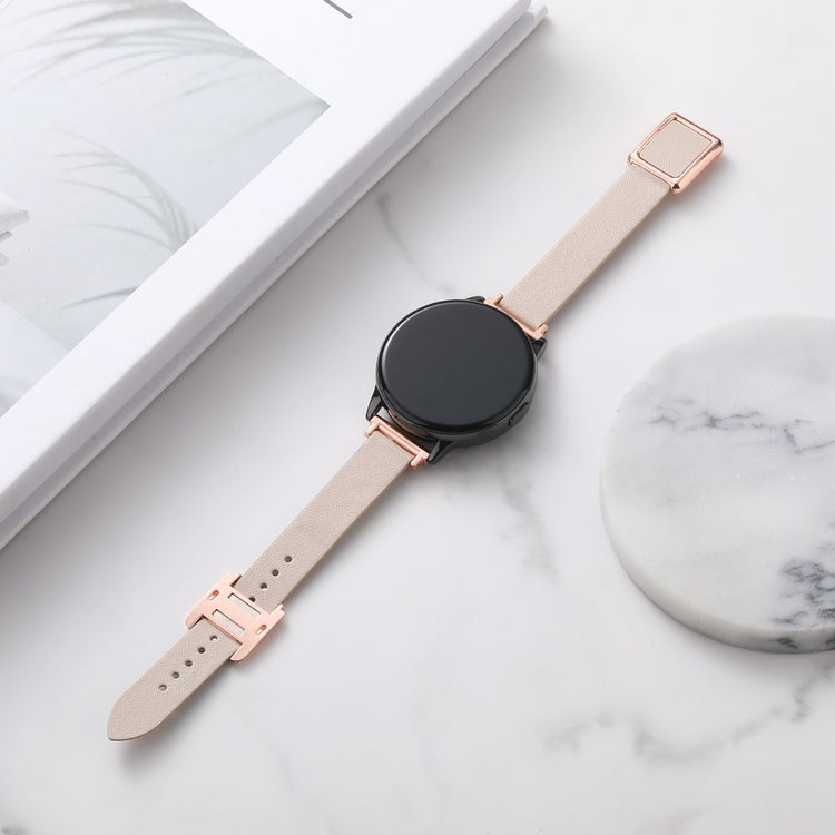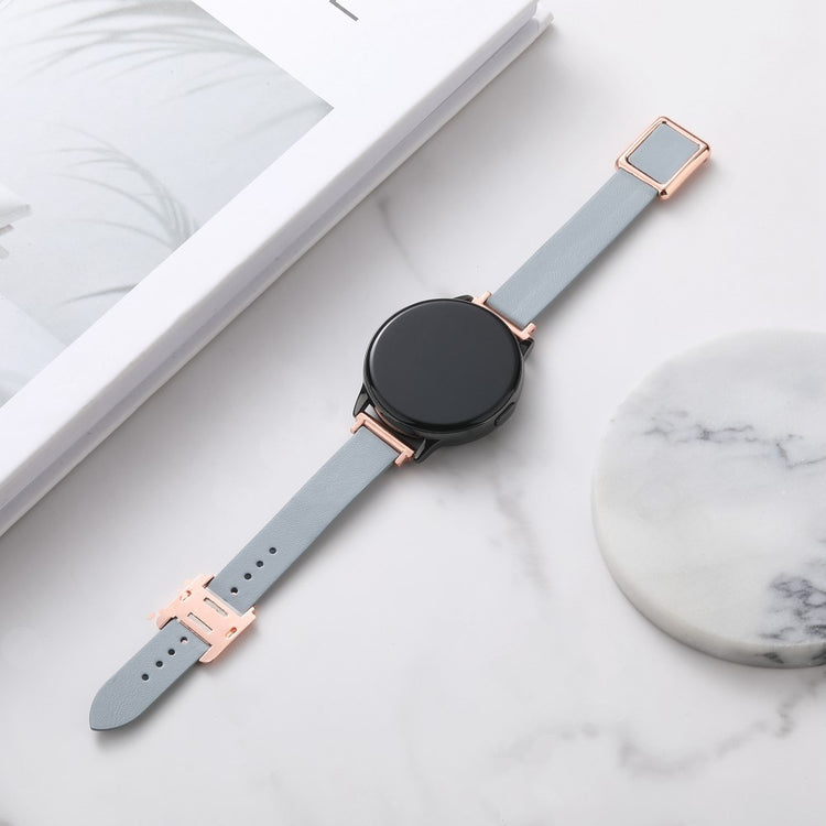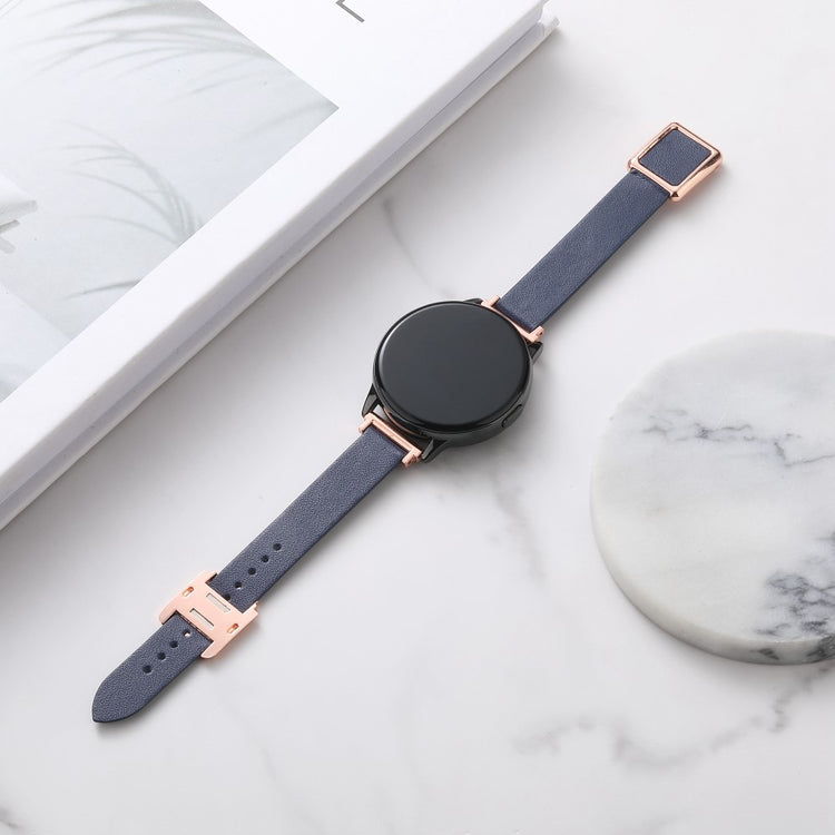 Samsung Galaxy Watch 20mm Universal Leather Strap with Magnetic Folding Buckle - Linen Blue / Rose Gold Buckle and Rose Gold Buckle