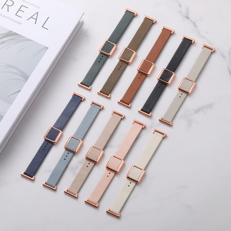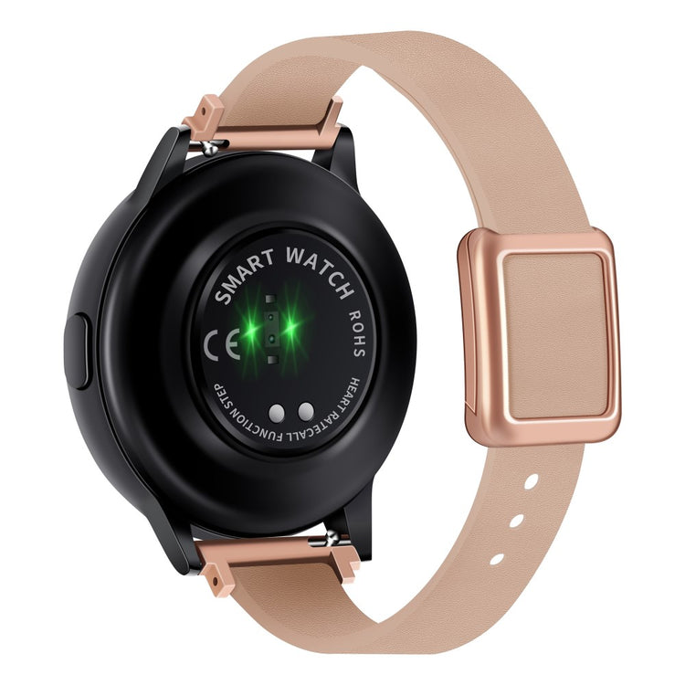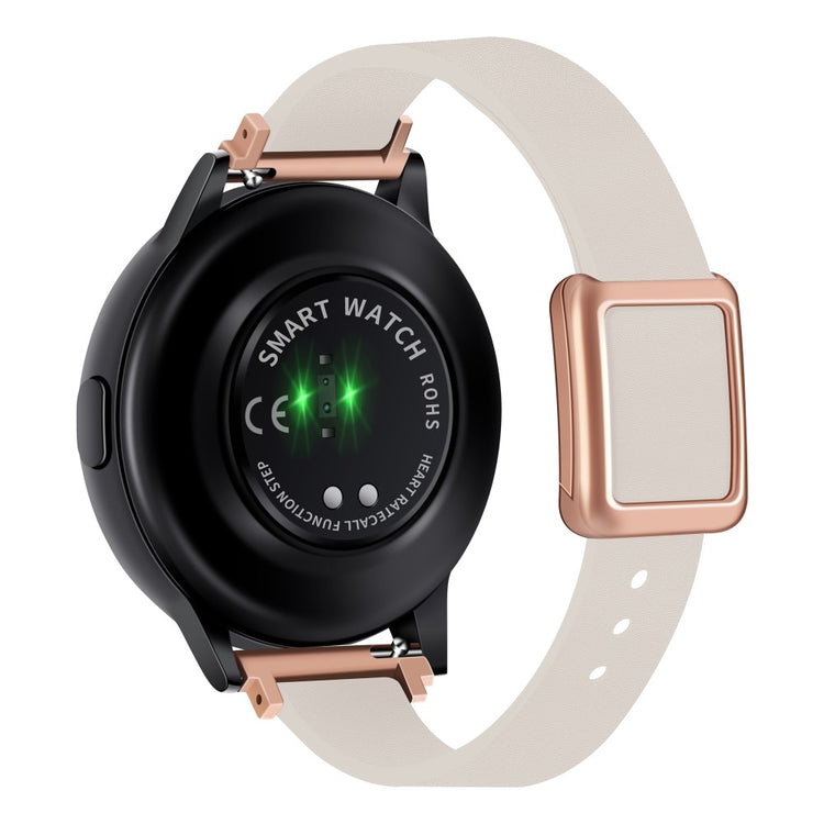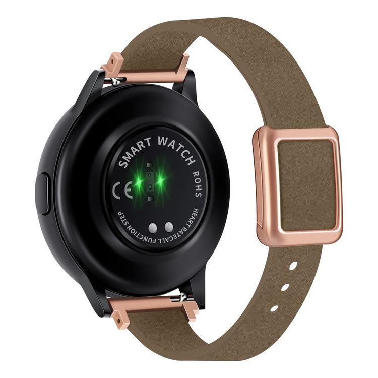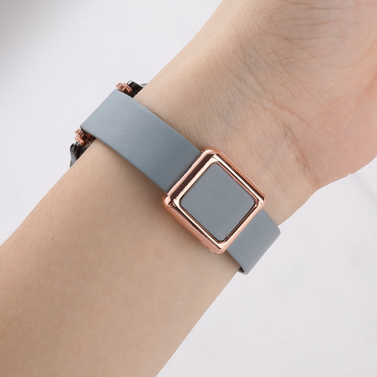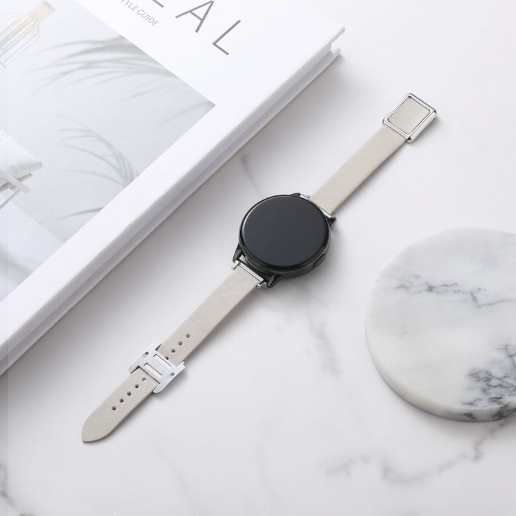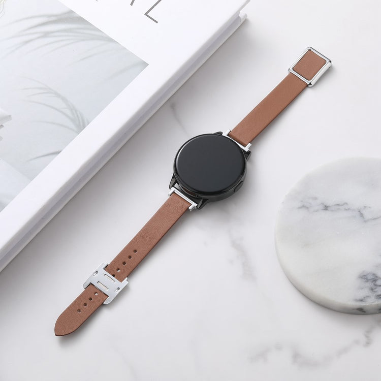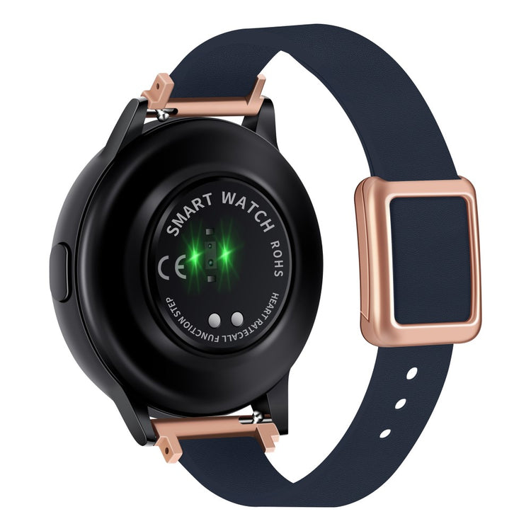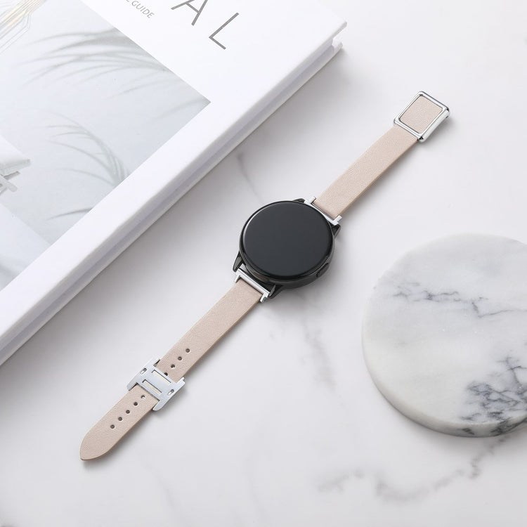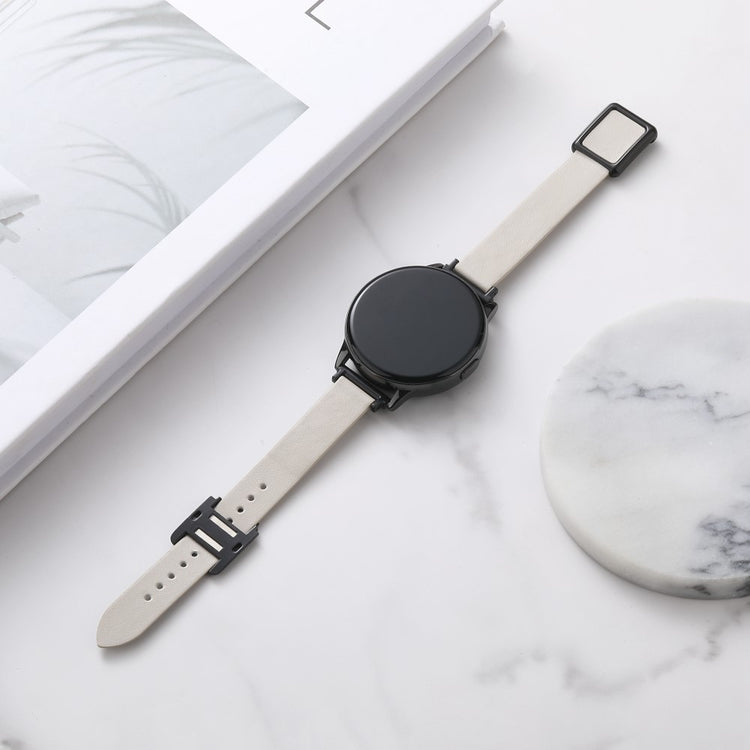 Samsung Galaxy Watch 20mm Universal Leather Strap with Magnetic Folding Buckle - Linen Blue / Rose Gold Buckle and Rose Gold Buckle