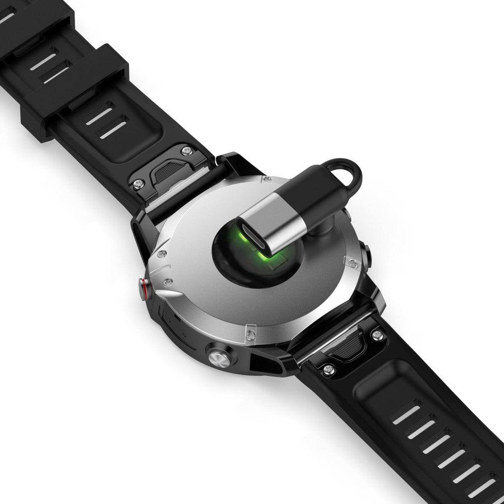 Der Garmin Watch Charger zu Micro USB Adapter ist die perfekte Lösung für alle Smartwatch-Nutzer, die Wert auf Zuverlässigkeit und Kompatibilität legen. Dieses Zubehörteil ist kompatibel mit einer Vielzahl von Garmin-Uhren, darunter die Fenix 7, Venu 2 Plus und Instinct 2, was es zu einem äußerst vielseitigen Begleiter macht. Der 90-Grad-Winkel sorgt dafür, dass der Adapter sicher in der entsprechenden Position bleibt und somit eine kontinuierliche und stabile Ladeverbindung garantiert. Hergestellt aus hochwertigem TPU und Aluminiumlegierung, besticht dieser Adapter durch seine Langlebigkeit und Premium-Qualität. Dank des kompakten und exquisiten Designs lässt er sich mühelos in der Tasche transportieren und kann ganz einfach an einem Schlüsselring oder Rucksack befestigt werden. Darüber hinaus ermöglichen die unterschiedlichen Schnittstellen, den Adapter jederzeit und überall zu nutzen, was Ihnen größtmögliche Flexibilität bietet. Investieren Sie in diesen praktischen Adapter, um sicherzustellen, dass Ihre Garmin-Uhr jederzeit einsatzbereit ist!