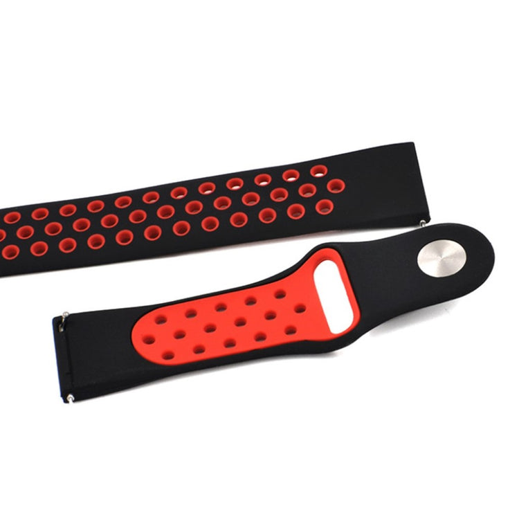 Das 22mm zweifarbige Silikonarmband für Smartwatches bietet ein modernes Design und besteht aus weichem Silikonmaterial mit Belüftungsöffnungen für eine schnelle Wärmeableitung und angenehmen Tragekomfort. Es verfügt über eine sichere und umweltfreundliche klassische Pin-Schließe, die eine individuelle Anpassung je nach Handgelenksgröße ermöglicht. Kompatibel mit einer Vielzahl von Marken, darunter Huami, Samsung, LG und Garmin, eignet sich dieses Armband für zahlreiche Modelle.