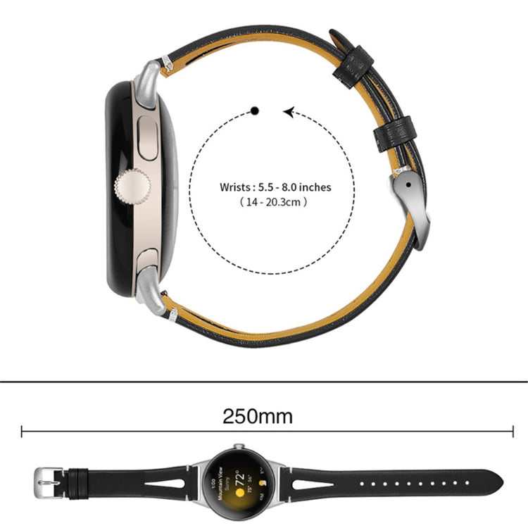 Der Hollow-out Armband aus echtem Leder für die Google Pixel Watch 2 / Pixel Watch ist die perfekte Wahl für alle, die Stil und Komfort vereinen möchten. Hergestellt aus hochwertigem echtem Leder, bietet dieses Armband ein angenehmes Tragegefühl und ist ideal, um es zu Ihrem täglichen Outfit zu kombinieren. Das Material ist hautfreundlich und verursacht keine Allergien, sodass Sie es sorglos tragen können. Die Uhrenschnalle besteht aus premium Materialien und garantiert Langlebigkeit. Der hochwertige Multi-Loch- und Schnappverschluss ermöglicht eine einfache Anpassung des Armbands an Ihr Handgelenk, damit es perfekt sitzt. Zudem stehen verschiedene Farben zur Auswahl, sodass Sie das Armband ganz nach Ihrem persönlichen Stil wählen können. Es ist eine ideale Ersatzlösung für Ihr altes, defektes Armband und eignet sich hervorragend für berufliche, Freizeit- oder andere tägliche Anlässe – sei es für Frauen oder Männer. Mit einer Breite von 20mm und einer Handgelenkumfang-Anpassung von 14 bis 20,3cm passt es auf viele Handgelenke. Investieren Sie in Stil und Qualität mit unserem Hollow-out Armband aus echtem Leder.
