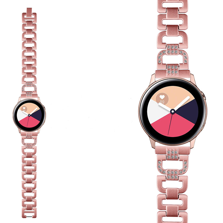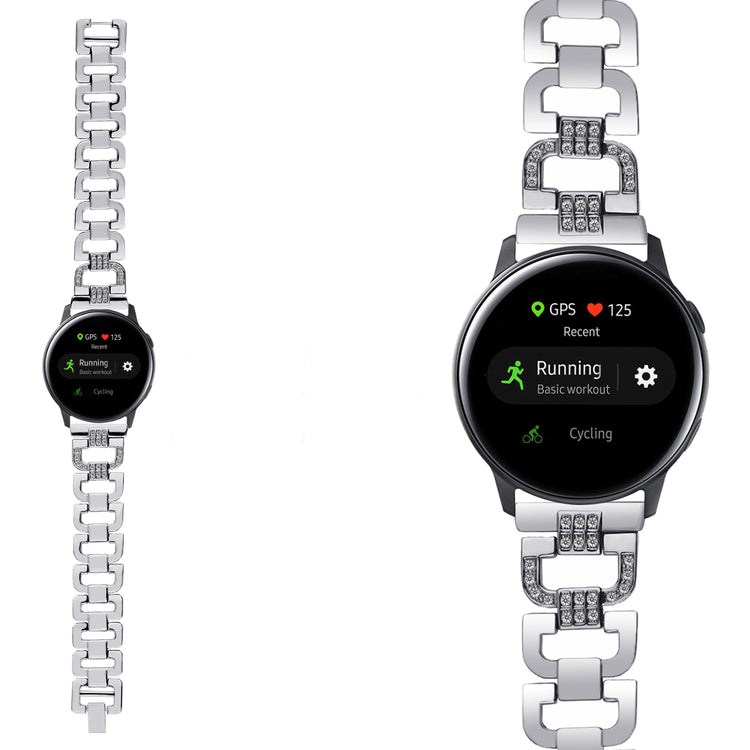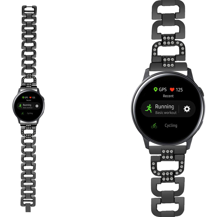 Das hochwertige 20mm Edelstahl-Armband vereint elegantes D-Ketten-Design mit funkelnden Strasssteinen, um Ihrem Smartwatch-Look einen Hauch von Luxus zu verleihen. Dank des ergonomischen Designs bietet es optimalen Tragekomfort, während der praktische Verschluss das An- und Ablegen erleichtert. Das Armband ist kompatibel mit verschiedenen Modellen wie Samsung Gear S2 Classic, Garmin Vivoactive 3 und Huami Amazfit GTS, und passt Handgelenke mit einem Umfang von 5,5 bis 8,7 Zoll.