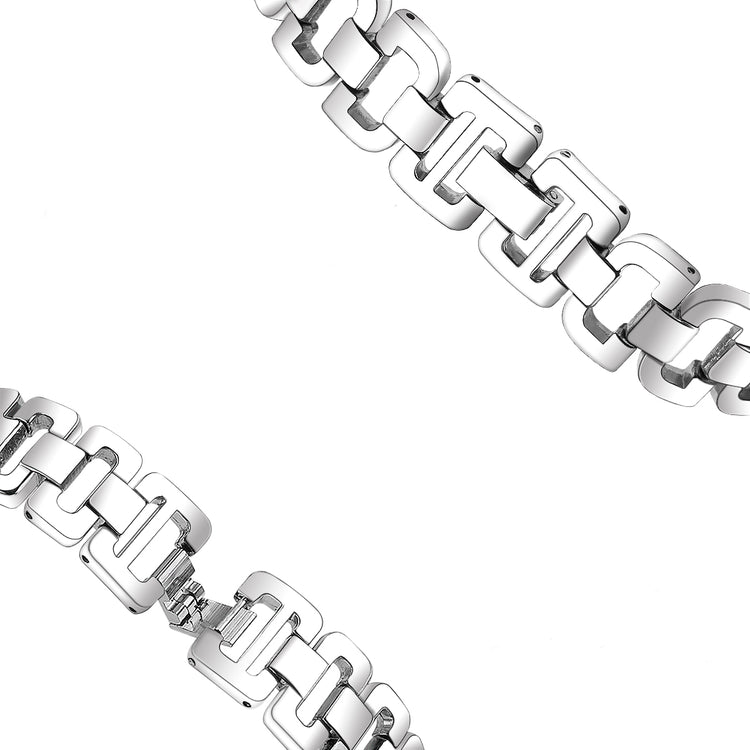 Dieses Uhrenarmband aus Edelstahl mit D-förmigen Gliedern und funkelnden Strasssteinen verleiht Ihrer Smartwatch einen Hauch von Luxus. Das ergonomische Design sorgt für optimalen Tragekomfort. Die praktische Faltschließe ermöglicht ein müheloses An- und Ablegen des Armbands.