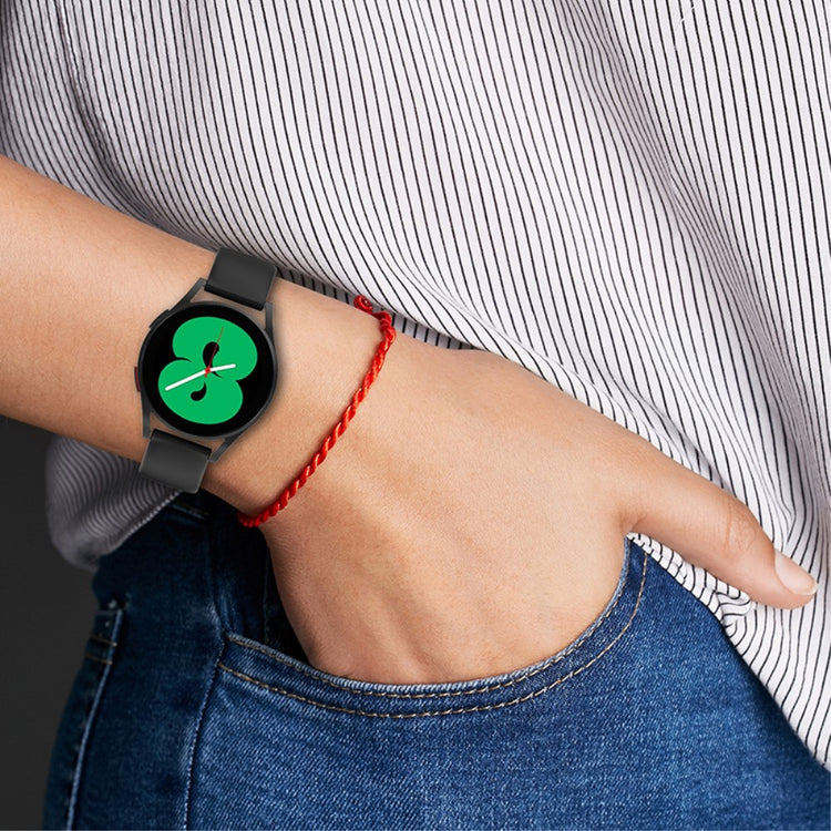 Entscheiden Sie sich für dieses hochwertige Armband aus umweltfreundlichem Silikon, das speziell für die Samsung Galaxy Watch4 (40mm/44mm), Galaxy Watch Active2 (40mm/44mm) sowie Amazfit Bip 3 und GTS 3 entwickelt wurde. Es bietet eine hervorragende Verschleißfestigkeit und garantiert eine lange Lebensdauer. Das ergonomisch gestaltete Design sorgt dafür, dass das Armband weich und bequem zu tragen ist, sodass Sie es den ganzen Tag über genießen können. Mit der 8-förmigen Schnalle ist das Anlegen und Abnehmen des Armbands ein Kinderspiel. Zudem ermöglicht das Vielzahl von Löchern eine einfache Größenanpassung, sodass Sie das Armband optimal an Ihr Handgelenk anpassen können. Dieses Armband ist die ideale Lösung, wenn Ihr altes oder beschädigtes Armband ersetzt werden muss. Es bietet nicht nur Funktionalität, sondern erlaubt Ihnen auch, Ihren persönlichen Stil auszudrücken. Investieren Sie in dieses praktische und stilvolle Zubehör, um das Beste aus Ihrer Smartwatch herauszuholen!