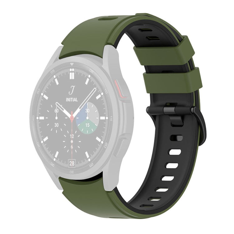 Entscheiden Sie sich für das hochwertige Dual-Color Silikon Armband für Ihre Samsung Galaxy Watch und profitieren Sie von zahlreichen Vorteilen. Das Armband besteht aus qualitativ hochwertigem Silikon, das nicht nur besonders komfortabel zu tragen ist, sondern auch perfekt zu Ihrem täglichen Outfit passt. Die Materialien sind hautfreundlich und lösen keine Allergien aus, sodass Sie es bedenkenlos tragen können. Zudem ist die Uhrenanschluss aus erstklassigem Material gefertigt und garantiert eine lange Lebensdauer. Das durchdachte Design mit mehreren Löchern ermöglicht eine einfache Größenanpassung, sodass das Armband sowohl für schmale als auch für breitere Handgelenke geeignet ist. Es ist die ideale Wahl, um ein altes oder beschädigtes Armband zu ersetzen und eignet sich hervorragend für Arbeit, Freizeit oder andere tägliche Anlässe. Vervollständigen Sie Ihre Smartwatch mit einem strapazierfähigen Armband, das Ihren persönlichen Stil unterstreicht!