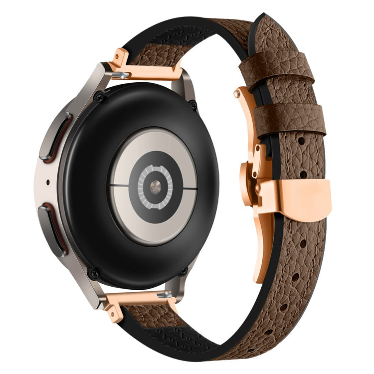 Samsung Galaxy Watch6 / Garmin Venu Sq / Huami Amazfit Bip Silicone and Genuine Leather Band 20mm Watch Strap - Brown / Rose Gold Buckle