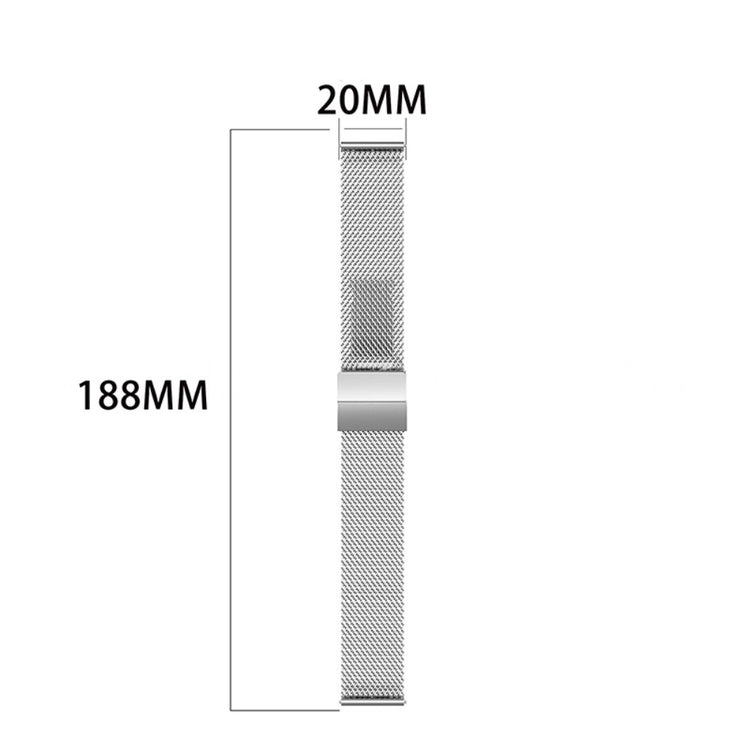 Erleben Sie den ultimativen Komfort und die Haltbarkeit mit unserem Edelstahl Schmetterlingsverschluss Milanese Ersatzarmband. Hergestellt aus hochwertigem 316 Edelstahl, der mit einer Vakuumbeschichtung versehen ist, ist dieses Armband nicht nur elegant, sondern auch färbecht – für eine langanhaltende Ästhetik. Die schnell wechselbaren Uhrenlaschen ermöglichen eine mühelose Installation und Entfernung, sodass Sie Ihr Armband jederzeit schnell anpassen können. Dieses Armband ist die perfekte Ersatzlösung für Ihr altes oder defektes Armband und sorgt dafür, dass Ihre Smartwatch immer stilvoll aussieht. Es passt ideal zu allen Uhren mit einem 20mm-Flachkopfanschluss und hat eine verstellbare Länge von 188mm, sodass Sie die perfekte Passform finden können. Auf diese Weise kombinieren Sie Funktionalität und Eleganz auf ideale Weise!