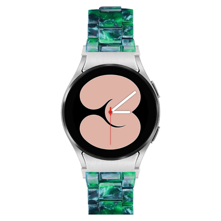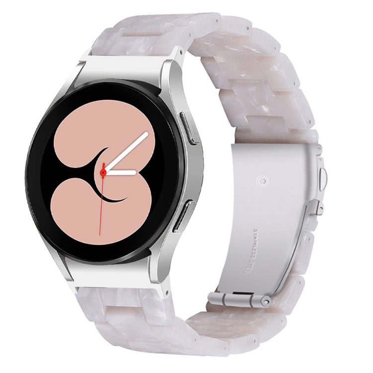 Entscheiden Sie sich für unser hochwertiges Armband aus Resin für Ihre Samsung Galaxy Watch4 Active (40mm/44mm) oder Watch4 Classic (42mm/46mm) und profitieren Sie von zahlreichen Vorteilen! Das wasserfeste und haltbare Material gewährleistet, dass Ihr neues Armband selbst in anspruchsvollen Situationen standhält. Mit einem einzigartigen und stilvollen Design verleihen Sie Ihrer Smartwatch eine persönliche Note und heben sich von der Masse ab. Der Edelstahl-Faltverschluss und die mitgelieferten Adapter machen das An- und Ablegen des Armbands zum Kinderspiel – kein frustrierendes Fummeln mehr! Die feine Verarbeitung und der handpolierte Prozess sorgen dafür, dass das Armband nicht nur gut aussieht, sondern auch glatt und komfortabel zu tragen ist. Es stellt eine ideale Ersatzlösung für Ihr altes, beschädigtes Armband dar und passt für Handgelenke mit einem Umfang von 5,5 bis 7,87 Zoll. Nutzen Sie die Gelegenheit und werten Sie Ihre Smartwatch jetzt auf!