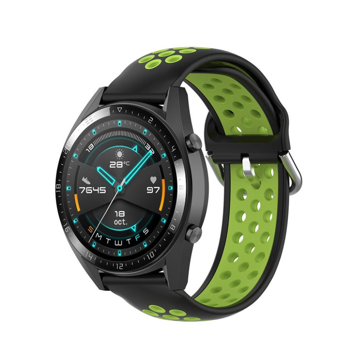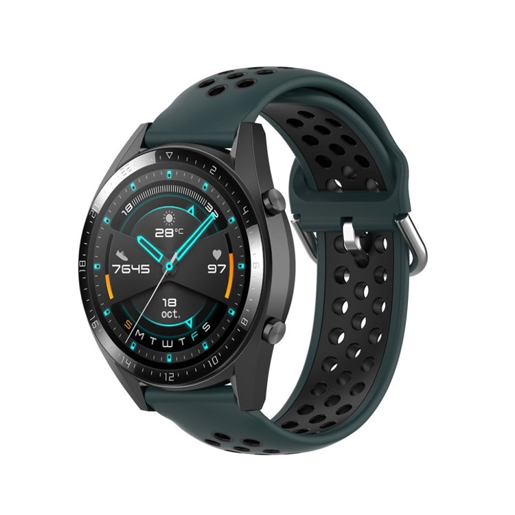Dieses 22mm Bi-color Silikon Smartwatch-Armband bietet eine moderne Optik und ist aus weichem, atmungsaktivem Material gefertigt, das für einen hohen Tragekomfort sorgt. Das Armband lässt sich individuell an die Handgelenksgröße anpassen und besteht aus sicheren und umweltfreundlichen Materialien, die unbedenklich für den Körper sind. Kompatibel mit einer Vielzahl von Smartwatches wie Samsung Galaxy Watch und Huawei Watch GT sorgt dieses Armband für vielseitige Einsatzmöglichkeiten.