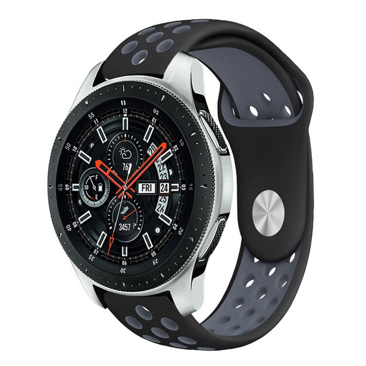 Entscheiden Sie sich für das Hollow-out Zwei-Farben Silikon Armband als perfekten Ersatz für Ihre Samsung Galaxy Watch 46mm! Dieses Armband bietet nicht nur ein modernes Design, sondern besteht auch aus weichem Silikonmaterial, das für höchsten Tragekomfort sorgt. Die spezielle hollow Ausführung gewährleistet eine schnelle Wärmeableitung, sodass Sie auch an warmen Tagen ein angenehmes Tragegefühl genießen können. Darüber hinaus lässt sich die Größe des Armbands individuell anpassen, sodass es perfekt an Ihr Handgelenk angepasst werden kann. Die Montage und Demontage des Armbands ist denkbar einfach, was Ihnen eine mühelose Handhabung garantiert. Gönnen Sie Ihrer Smartwatch ein Upgrade und erleben Sie den Unterschied!