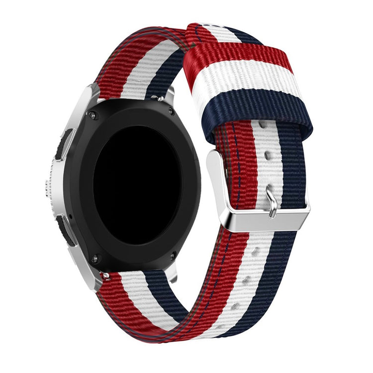 Verleihen Sie Ihrer Samsung Galaxy Watch 46 mm mit diesem edlen Ersatz-Armband einen neuen Look. Das einzigartige Design mit vertikalen Streifen und das strapazierfähige Nylongewebe sorgen für einen stylischen und komfortablen Tragekomfort.