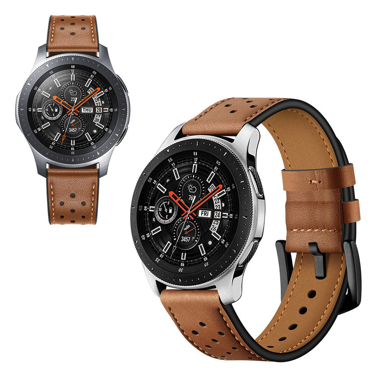 Entscheiden Sie sich für unser hochwertiges 22mm echtes Leder-Ersatzarmband für die Samsung Galaxy Watch 46mm und profitieren Sie von zahlreichen Vorteilen. Dieses Armband besticht durch seine weiche und langlebige Beschaffenheit, die für höchsten Tragekomfort sorgt. Dank der präzisen Verarbeitung und der feinen Ledertextur fühlen Sie den Unterschied sofort. Die sauberen Nähte und die klassische Metallverschluss ermöglicht ein einfaches An- und Ablegen. Mit den integrierten Löchern können Sie das Armband ganz einfach an Ihre persönliche Größe anpassen. Dieses Armband ist die ideale Ersatzlösung für Ihr altes, defektes Armband und verleiht Ihrer Smartwatch ein neues, elegantes Erscheinungsbild. Genießen Sie die Vielseitigkeit, die dieses Armband für eine Vielzahl von Smartwatch-Modellen bietet, und machen Sie Ihre Smartwatch zu einem stilvollen Accessoire für jeden Anlass.