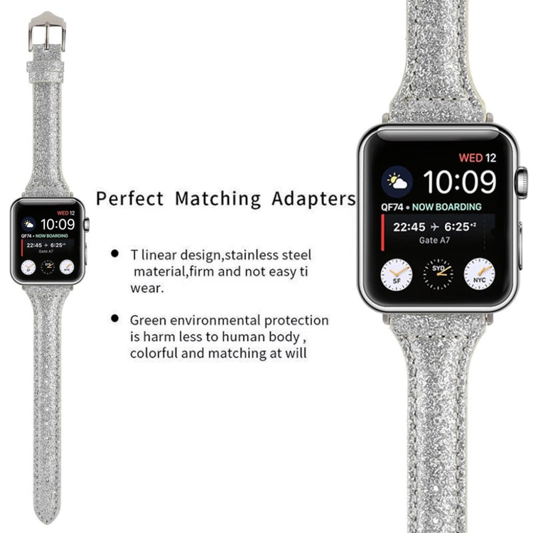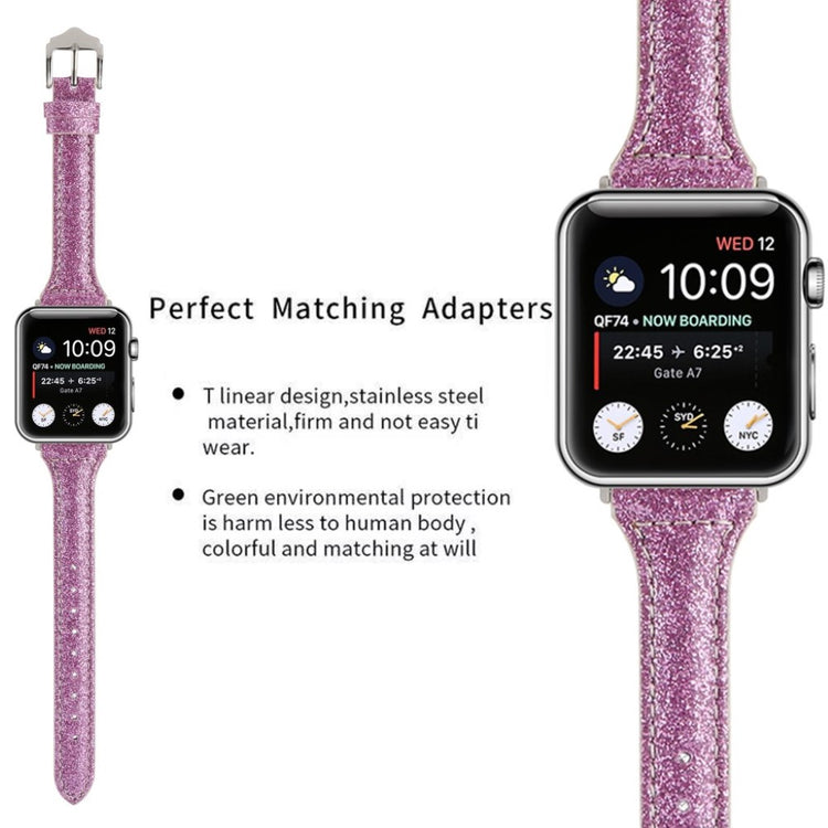 Das Glitzerpulver Dekor PU Leder Armband für die Apple Watch bietet eine stilvolle Möglichkeit, das alte Armband zu ersetzen. Hergestellt aus hochwertigem Leder, sorgt es für eine hautfreundliche und bequeme Trageerfahrung. Einfach zu installieren und zu entfernen, personalisiert es Ihre Uhr und verleiht jedem Alltagslook ein fantastisches Upgrade.