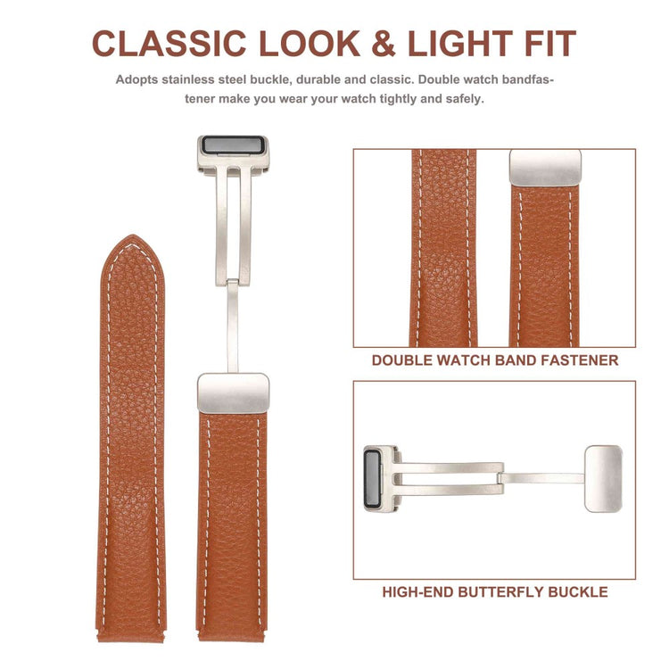 Die Uhrband aus hochwertigem echtem Leder für die Realme Watch 3 und Huami Amazfit GTR 4/ GTR 4 Pro ist die perfekte Wahl für alle, die Stil und Komfort suchen. Sie bietet nicht nur einen höchsten Tragekomfort, sondern lässt sich auch mühelos mit jedem Alltagsoutfit kombinieren. Das Material ist hautfreundlich und allergiefrei, sodass Sie sich keine Sorgen um Hautirritationen machen müssen. Der hochwertige Faltverschluss ermöglicht eine einfache Anpassung an Ihr Handgelenk, was die Nutzung äußerst praktisch macht. Darüber hinaus steht Ihnen eine Vielzahl von Farben zur Auswahl, sodass Sie ganz nach Ihrem individuellen Stil entscheiden können. Dieser elegante Ersatz für Ihr altes oder beschädigtes Uhrband eignet sich ideal für verschiedene Anlässe – seien es geschäftliche Termine oder Freizeitaktivitäten. Mit einer Breite von 22 mm und einer Handgelenkgröße von 160 mm bis 220 mm passt dieses Uhrenarmband perfekt und ist mit zahlreichen Smartwatches kompatibel. Investieren Sie in ein Accessoire, das sowohl Funktionalität als auch Ästhetik vereint und Ihrem Look das gewisse Etwas verleiht.