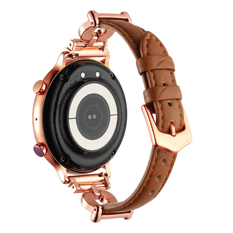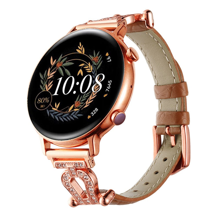 Samsung Galaxy Watch3 45mm / Huawei Watch GT 4 46mm Watch Band 22mm Cowhide Leather Wrist Strap - Light Brown / Rose Gold Buckle Buckle