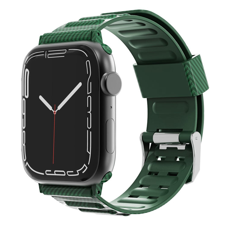 Entscheiden Sie sich für unser hochwertiges TPU-Uhrenarmband mit Kohlefaser-Design als perfekten Ersatz für Ihr Apple Watch Series 7 41mm. Dieses Armband aus flexiblem und leichtem TPU-Material vereint Komfort und Stil, um Ihren Alltag zu bereichern. Das stilvolle Kohlefaser-Design verleiht nicht nur eine moderne Optik, sondern schützt Ihre Uhr auch effektiv vor Kratzer und Stößen. Mit mehreren Löchern zur Längenverstellung lässt sich das Armband leicht anpassen, was eine perfekte Passform für verschiedene Handgelenksgrößen (10-20 cm) garantiert. Ein ideales Armband, um Ihr altes oder defektes Armband zu ersetzen und gleichzeitig ein stilvolles Statement zu setzen. Gönnen Sie sich oder einem lieben Menschen dieses praktische und ästhetische Accessoire für mehr Freude am Tragen Ihrer Smartwatch!