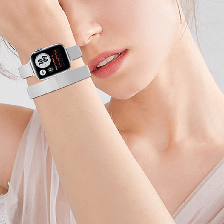 Mega skøn Apple Watch Series 7 41mm Ægte læder Rem - Sølv#serie_5
