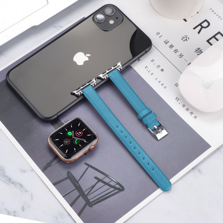 Mega sejt Apple Watch Series 7 41mm Ægte læder Rem - Størrelse: L - Blå#serie_1