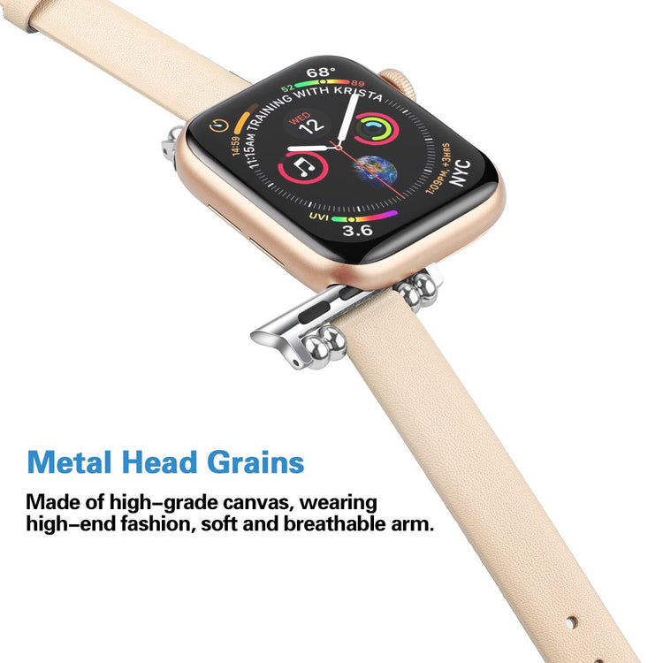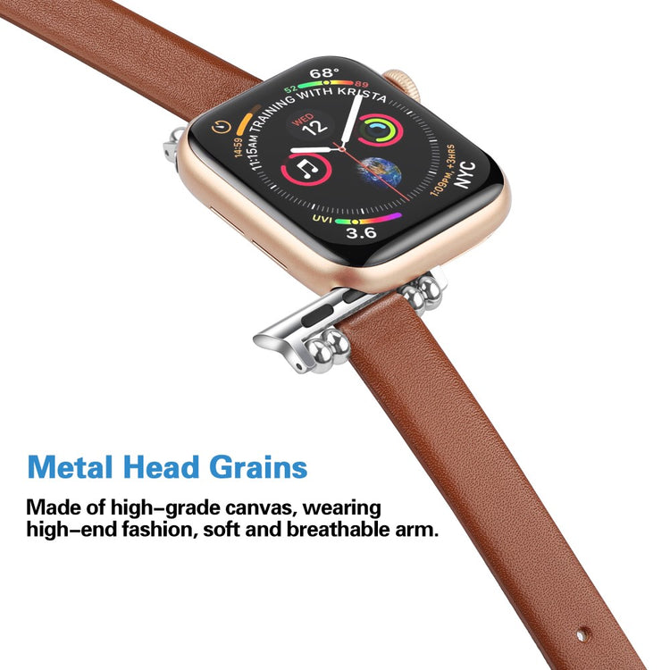 Ein stilvolles Armband ist ein unverzichtbares Zubehör für Ihre Smartwatch! Unser schlankes Lederarmband in Größe L für die Apple Watch bietet zahlreiche Vorteile, die es zur idealen Wahl für jeden machen. Hergestellt aus hochwertigem Leder, garantiert es eine langanhaltende Haltbarkeit und einen komfortablen Tragekomfort, sodass Sie es den ganzen Tag über angenehm tragen können. Dank der verstellbaren Größe passt sich das Armband perfekt Ihrem Handgelenk an und sorgt für einen sicheren Sitz. Es ist die ideale Ersatzlösung für Ihr altes oder beschädigtes Armband und verleiht Ihrer Smartwatch einen frischen Look. Ob bei der Arbeit, auf Verabredungen, auf Reisen oder im Alltag – dieses Armband ist für jede Gelegenheit geeignet. Mit einem Gewicht von nur 15g fühlen Sie sich fast nicht, als würden Sie ein Armband tragen. Warten Sie nicht länger und geben Sie Ihrer Apple Watch den perfekten Stil mit diesem exquisiten Lederarmband!
