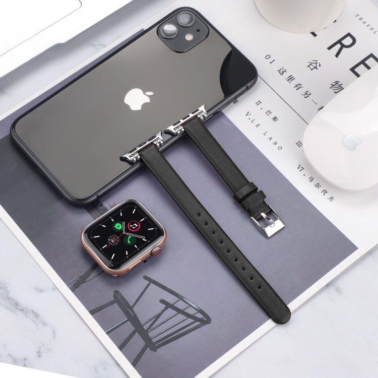 Mega sejt Apple Watch Series 7 41mm Ægte læder Rem - Størrelse: L - Sort#serie_6