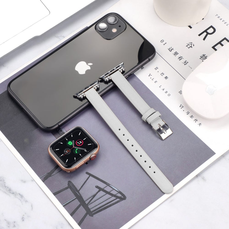 Mega sejt Apple Watch Series 7 41mm Ægte læder Rem - Størrelse: L - Sølv#serie_4