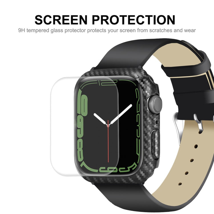 Diese Hülle mit integriertem Displayschutz aus gehärtetem PC und biegsamem PET bietet Ihrer Apple Watch Series 9/8/7 (41mm) zuverlässigen Schutz vor Kratzern und Stürzen. Die Carbonfaser-Textur sorgt für eine angenehme Haptik.